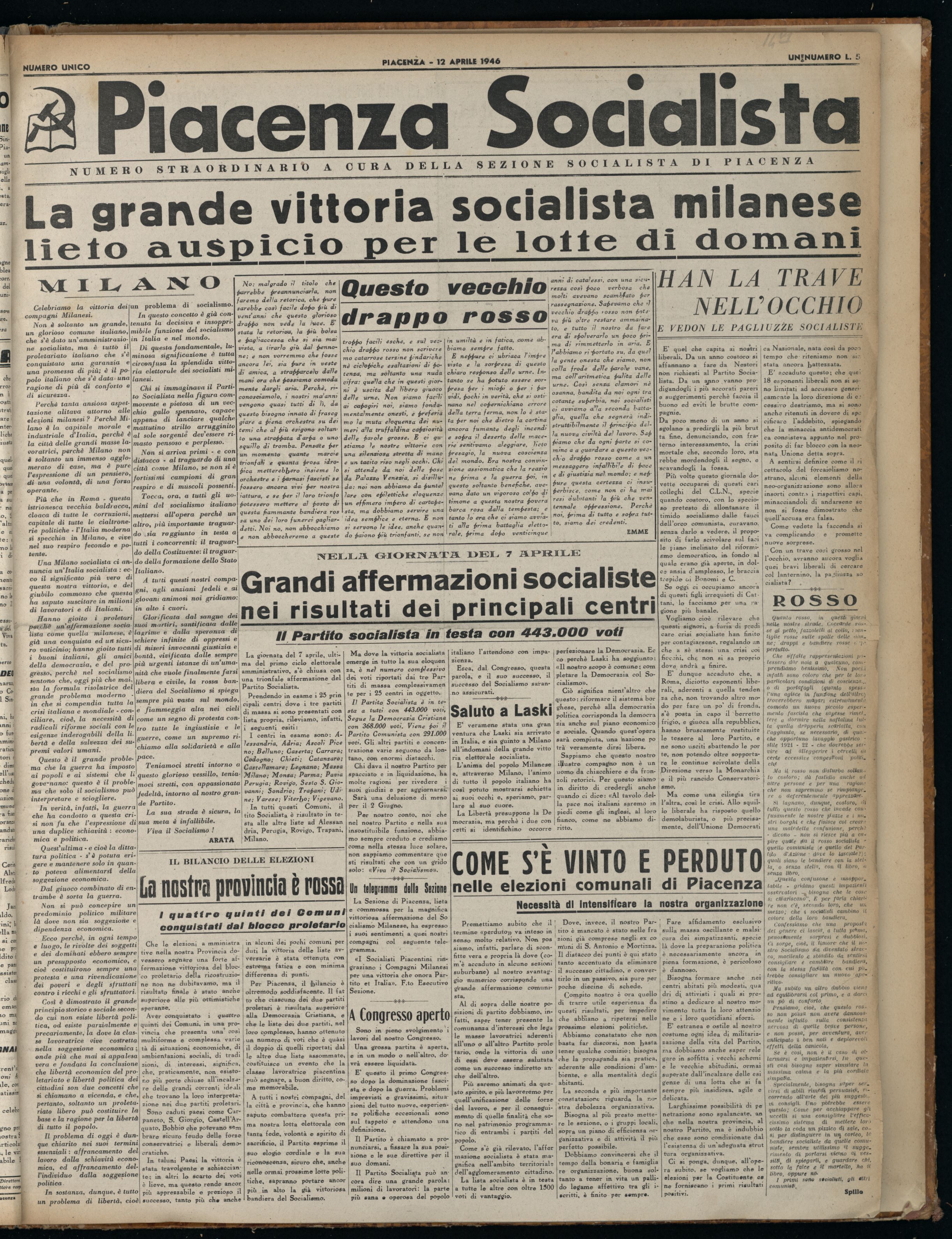 ( Anno: 1 , Num.1 ) - Piacenza Socialista - Numero unico